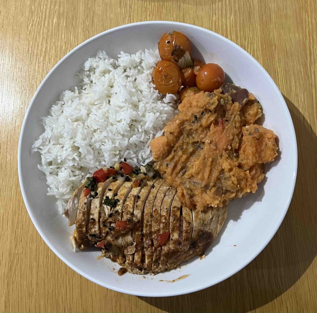 The sauce included in the meal was spicy and had an undesired taste to me, which sadly ruined the meal. It’s worth noting that it was not advertised as a spiced meal on the website, so perhaps the chefs need a reminder of this for their spice averse customers. The sauce had leaked from its container and contaminated the whole meal with spice. It also made the smashed sweet potato a bit soggy in places. The cherry tomatoes were not very nice so were omitted also. I used the juice of the tomatoes in an attempt to rehydrate the chicken as it was quite dry, but it didn’t work. The chicken slices were also too small in my opinion and thicker ones would have been more helpful. Of all the chicken dishes I have tried, the chicken in this dish was the worst I have tried, being both dry and slightly too chewy.